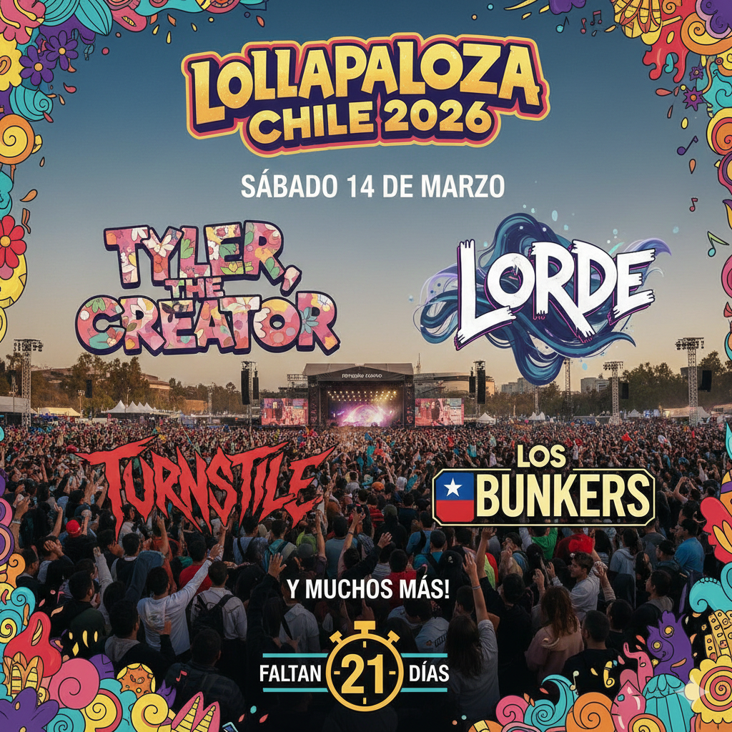 Falta poco para los conciertos de Lollapalooza 2026 en Santiago de Chile. 13, 14 y 15 de Marzo del 2026.